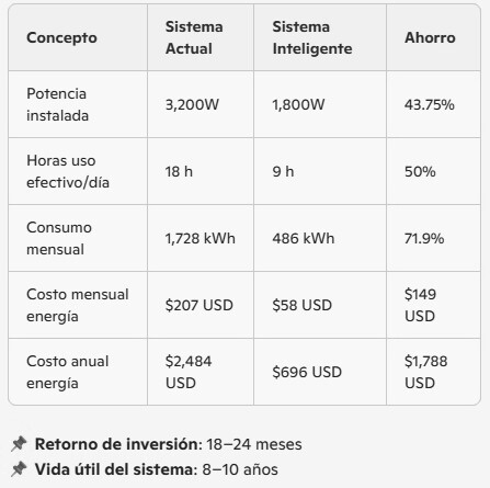 ⏱ Uso promedio: 6–8 horas/día en áreas comunes, 4–5 horas/día en habitaciones